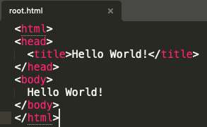 Finally, we make a minimal HTML file and save it under views/root/root.html: